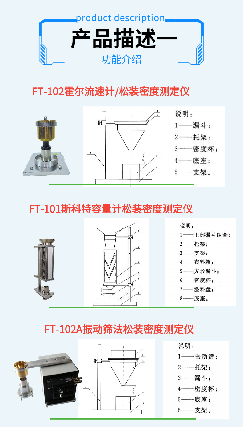 松裝密度是評(píng)價(jià)粉體的重要指標(biāo),在粉體行業(yè)中,體現(xiàn)了粉體的工藝性能,在料倉設(shè)計(jì)中也是重點(diǎn),粉末顆粒形狀、尺寸、表面粗糙度、粒度分布含水率等都是影響松裝密度的測(cè)量;松裝密度儀又稱為:松裝密度測(cè)定裝置,松裝密度測(cè)定儀,松裝密度測(cè)試儀,在細(xì)分行業(yè)叫法差異.