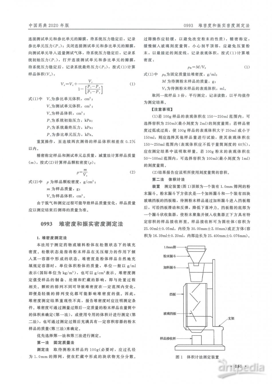 《中國藥典》2020年版,新增了粉末樣品堆密度和振實密度測試的方法、裝置和要求。本文中,有關堆密度和振實密度測試的內容