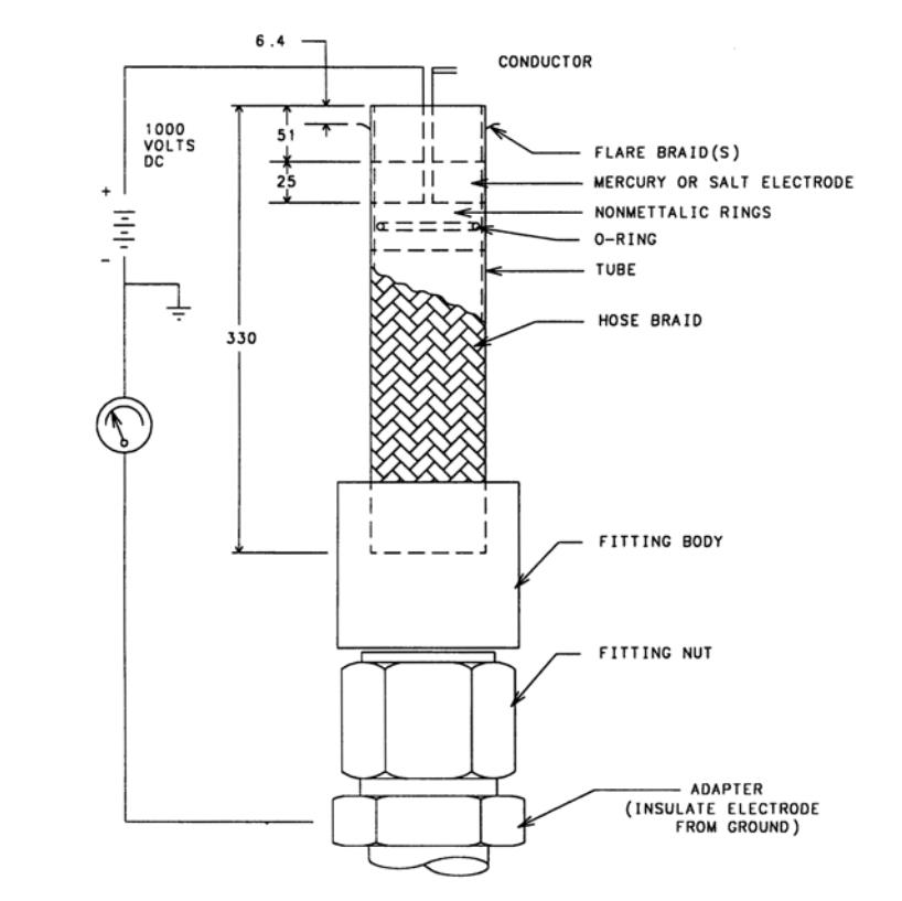 電導率測試(僅聚四氟乙烯軟管)以及樣品應該是330毫米±10毫米測試;電壓DC:1000 V