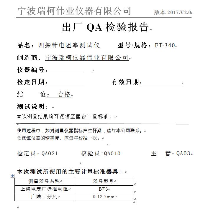 3Q驗(yàn)證文件、計(jì)量證書(shū)