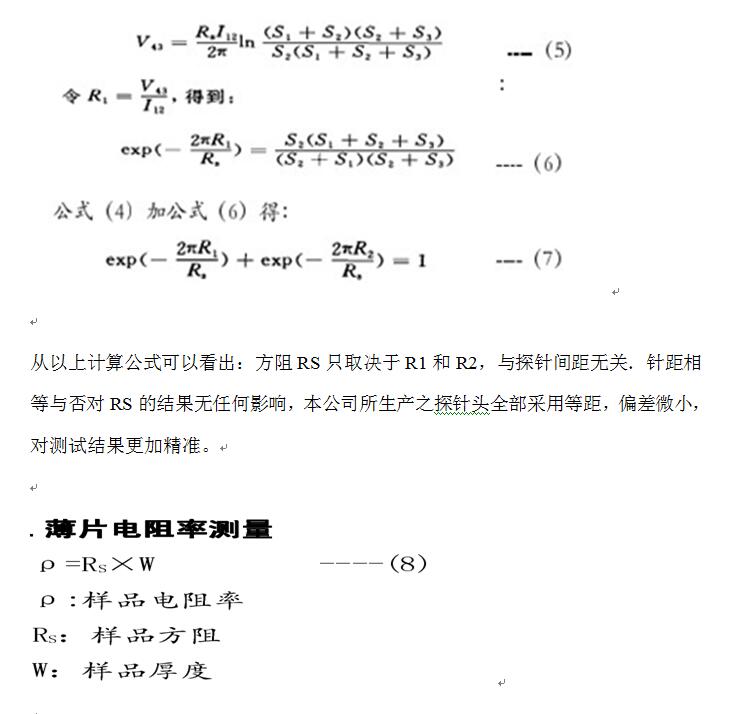 1.四探針法測試薄層樣品方阻計算和測試原理如下:
