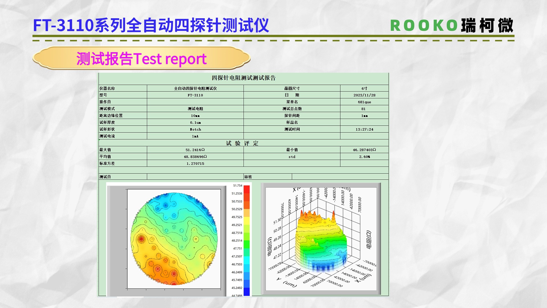 掃描電阻率/方阻測試儀提供2D和3D圖譜分析