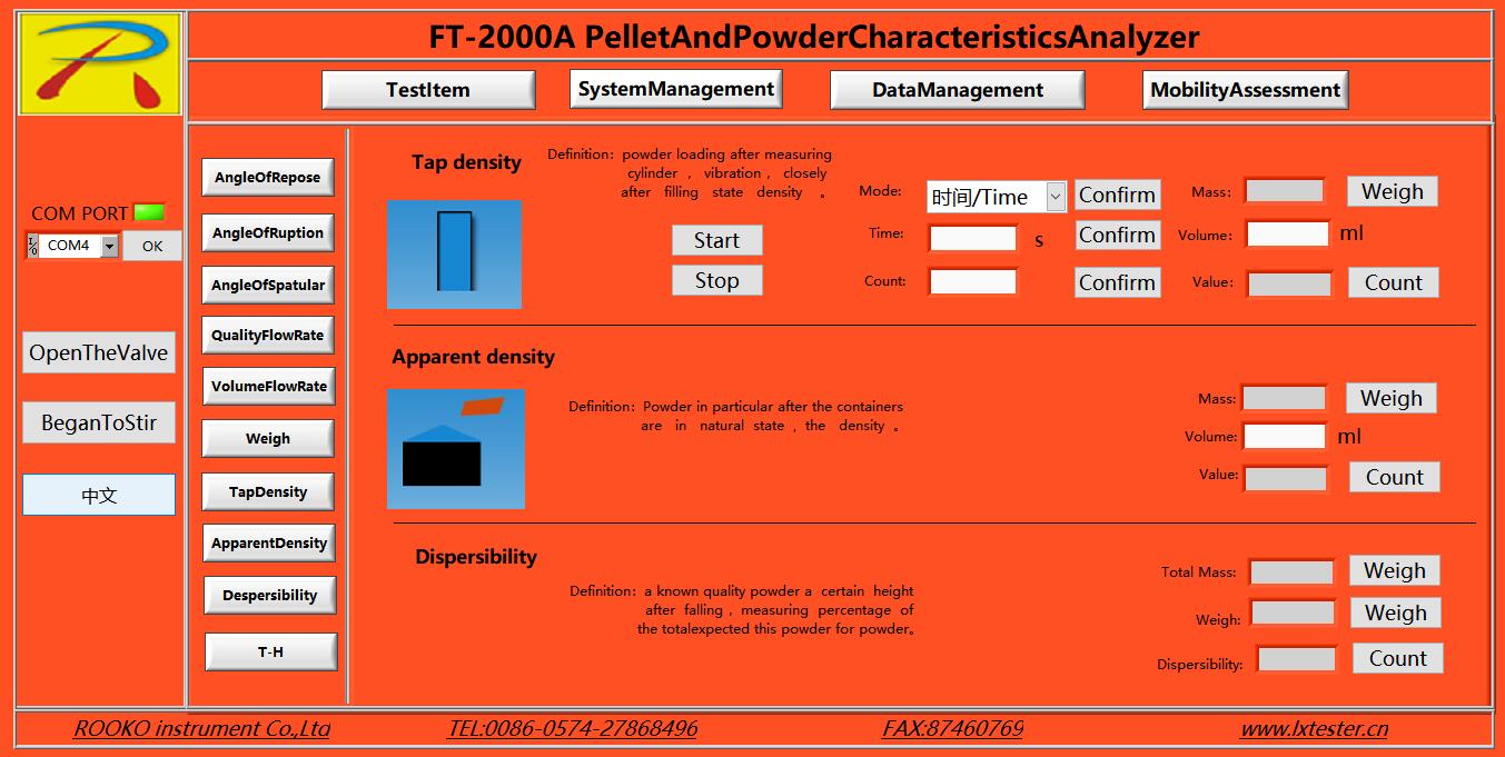 FT-2000A自帶PC軟件具備曲線圖譜過程分析及報表管理功能 particle and powder characteristic analyzer (multi-function) Comes with PC software analysis function. |